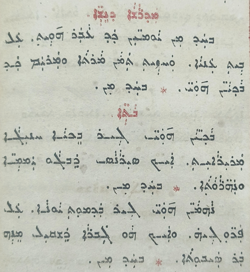 ܒܚܲܕ ܡ̣ܢ ܝܵܘܡܝܼ̈ܢ ܟܲܕ ܥܵܒܲܪ ܗ݇ܘܹܝܬ݂. ܥܲܠ ܒܹܝܬ݂ ܥܲܢܝܵܐ. ܘܲܚܙܹܝܬ݂ ܬܲܡܵܢ ܡܵܪܬܵܐ ܘܡܲܪܝܲܡ ܟܲܕ ܒܵܟ݂ܝܵــ̈ܢ ܗ݇ܘܲܝ̈.܀ ܒܚܲܕ ܡ̣ܢ...