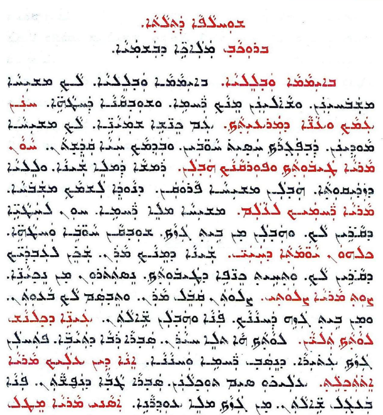 ܒܐܝܼܡܵܡܵܐ ܘܲܒ݂ܠܸܠܝܵܐ. ܒܐܝܼܡܵܡܵܐ ܘܲܒ݂ܠܸܠܝܵܐ. ܠܵܟ݂ ܡܫܝܼܚܵܐ ܡܫܲܒ݁ܚܝܼܢܲܢ. ܘܫܵܐ̇ܠܝܼܢܲܢ ܡ̣ܢܵܟ݂ ܪ̈ܲܚܡܹܐ. ܘܫܘܼܒ݂ܩܵܢܵܐ ܕܲܚܛܵܗܹ̈ܐ.