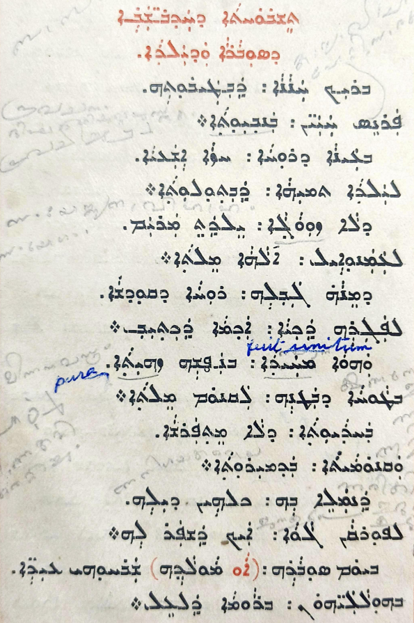 Modifications from the original (made by Paul Bedjan) are marked in blue. Interestingly, these modifications are not present in another book published by the Lazarist Mission in Urmia in 1876, just 10 years prior to Bedjan.